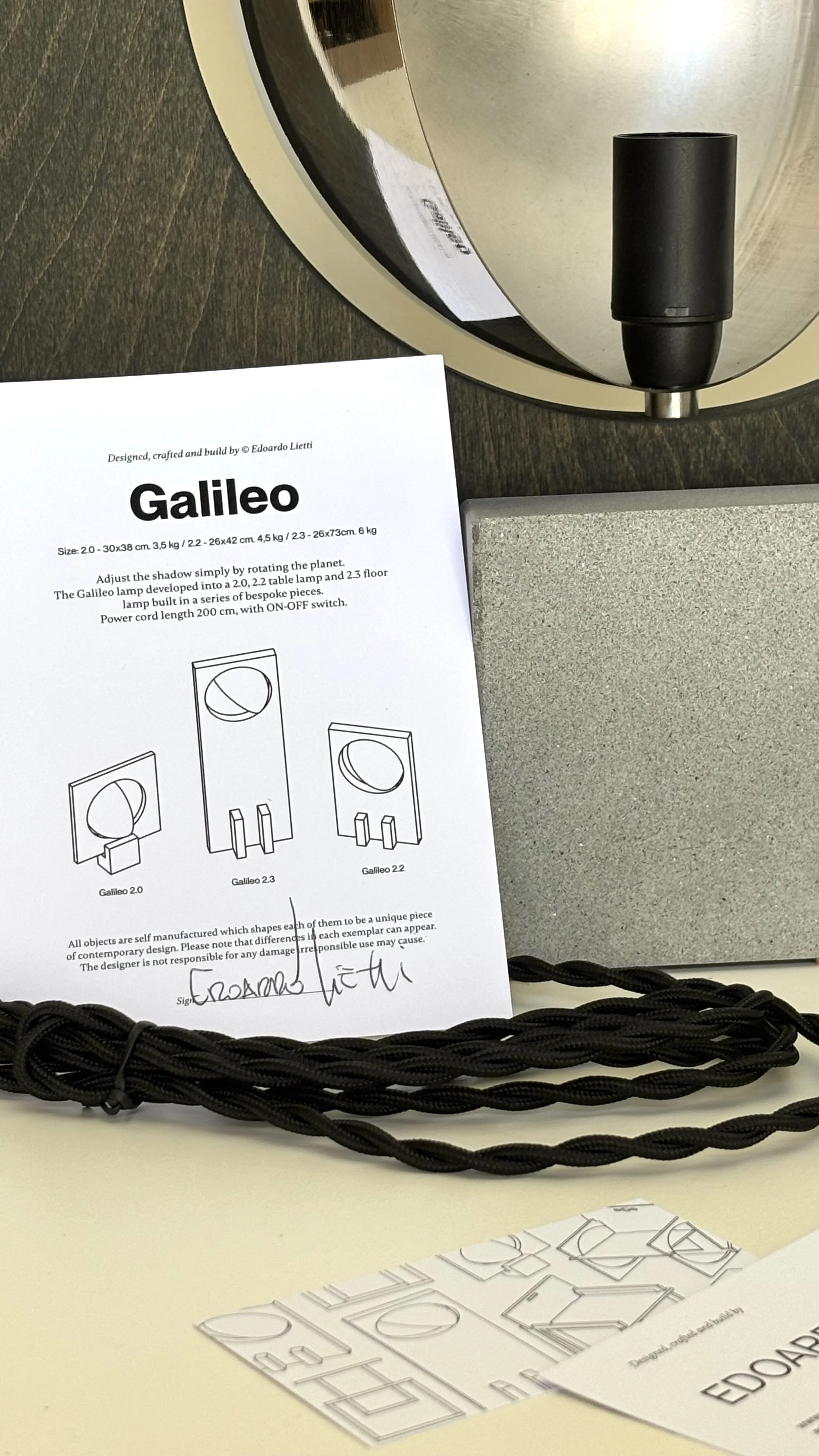 Easily adjust the shadow by rotating the planet. The Galileo lamp has evolved into the 2.0, 2.2 table lamp, and 2.3 floor lamp, each crafted as a bespoke piece in this unique series.